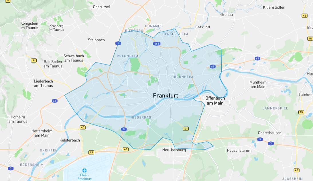 Entdecke unser Liefergebiet in Frankfurt